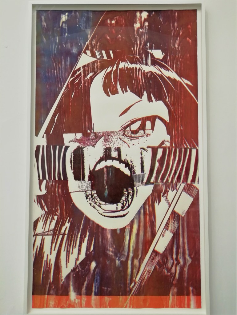Le immagini di Marclay, che siano fisse o video, nascono dalla manipolazione di materiali preesistenti; in questa serie di incisioni l’artista assembla parti di fumetti americani e giapponesi costruendo volti terrorizzati dei quali si percepisce il grido di angoscia. Volti che condensano le tragedie contemporanee e diventano “allarmi universali”.