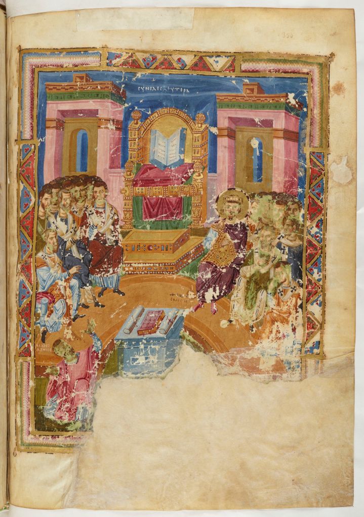 Un modello importante di Syntronon è disegnato nella miniatura del Codice delle Omelie di Gregorio di Nazianzo, MS. gr. 510, del IX secolo: