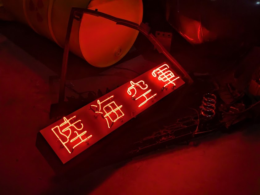 Sparsi tra i relitti, ideogrammi al neon riportano frammenti dell’art. 9 della Costituzione del Giappone, tra cui “…. il popolo giapponese rinuncia per sempre alla guerra..…”; la scelta di riprodurre l’articolo con “frasi” spezzate è dovuta alla volontà di far emergere la discussione ancora viva in Giappone sui contenuti dello stesso.