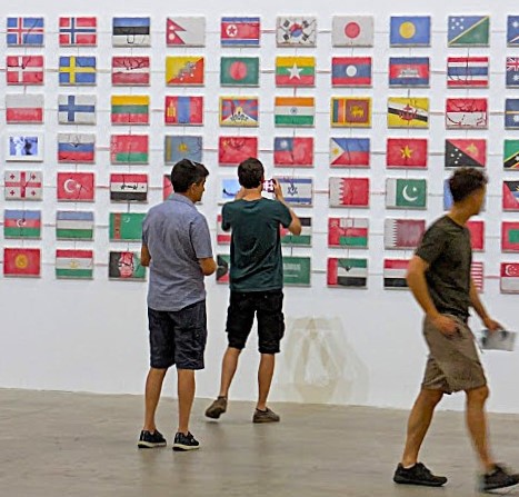Un monitor tra le bandiere cattura l’attenzione e lì ci appaiono alcune formiche che si stanno muovendo tra le bandiere corrodendone l’integrità, indifferenti ed incuranti di limiti e dei confini disegnati: un’idea artistica strabiliante, che ci racconta, in estrema sintesi, riflessioni sul ruolo dell’umanità in rapporto alla natura e gli altri esseri viventi, sulla fragilità e l’inutile oppressione dei confini e dei limiti imposti dal potere, sull’ineluttabilità delle migrazioni e degli spostamenti, temi oggi tra i più scottanti della nostra epoca.